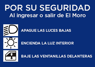 * Cuando INGRESA o SALE de El Moro hágalo siempre con las LUCES BAJAS APAGADAS, dejando ENCENDIDAS SÓLO LAS LUCES DE POSICIÓN.