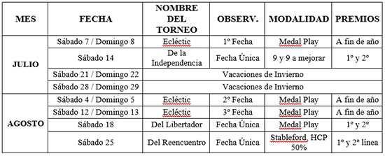 A continuación, compartimos el reglamento y el fixture tentativo de julio y agosto (sujeto a cambios por razones climáticas o extraordinarias).